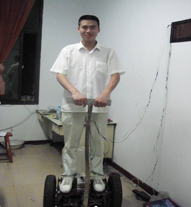由梁义维副教授承担的载人两轮自平衡车,其运作原理主要是建立在一种被称为“动态稳定”的基本原理上,以动态倾角传感器来判断车身所处的姿势状态,通过微处理器控制电机运动达到平衡。驾驶人只要前倾或后仰,自平衡车就会前进或后退。