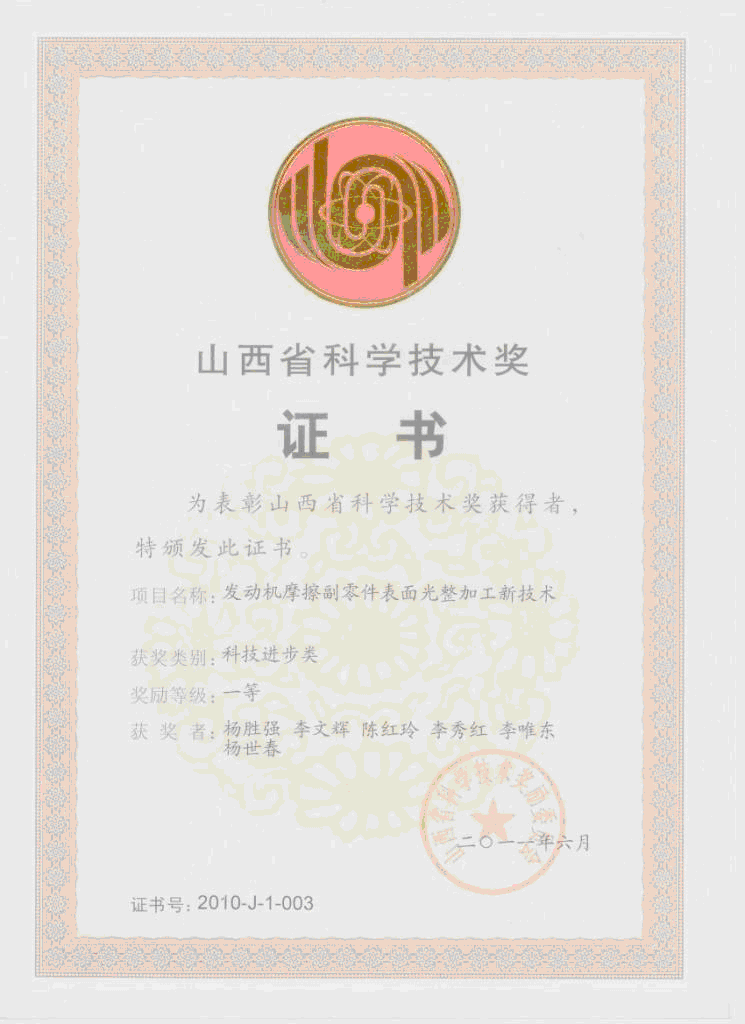 在多项基金、计划的支持下,自主研发出适用于多形态轴类、盘类、套类零件的自由磨具光整加工成套技术和装备。授权国家发明专利7项、实用新型专利10项、软件著作权4项,出版总装备部国防科技图书出版基金资助的专著1部,发表论文80余篇(SCI、EI收录40余篇),列入国家重点新产品1项、河北省高新技术产品1项,获批机械行业标准2项,获山西省科技进步一等奖1项。研究成果既满足了发动机制造业进一步改善零件表面完整性的要求,又可广泛用于其它装备制造业。