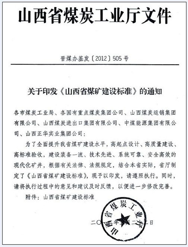 新葡官网寇子明教授团队研究开发的“基于能量转换的矿用倾斜带式输送机防抱死安全制动关键技术”继2010年荣获国家技术发明二等奖之后,该技术又于2012年5月22日正式入选山西省煤矿建设标准。