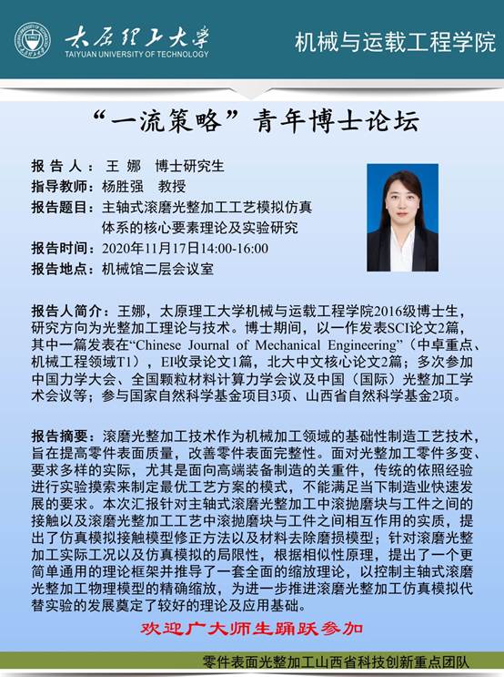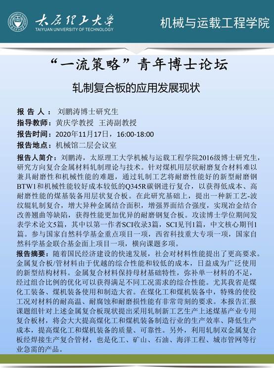 机械与运载工程学院“一流策略”青年博士讲坛开讲通知
