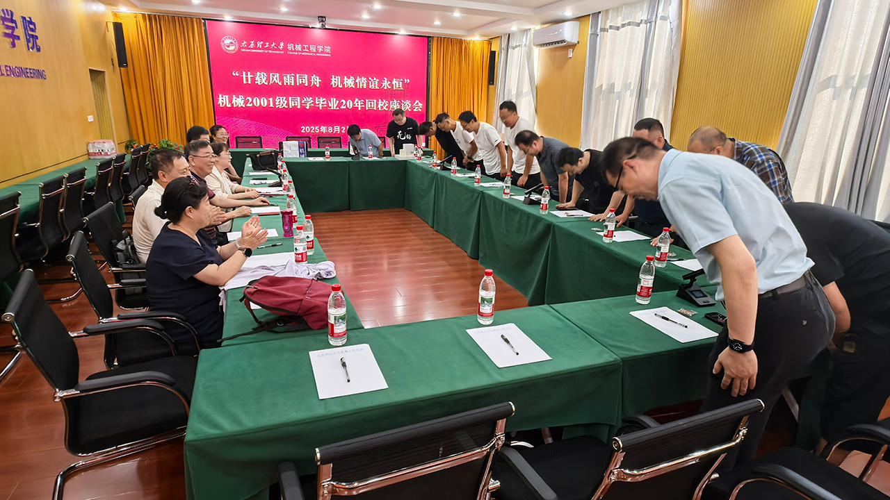 座谈会上,校友们逐一介绍了各自毕业二十年来的奋斗历程与事业成就。他们深情回顾,今日能在各自岗位上担当重任、有所建树,无不深深得益于母校的精心培育和恩师的谆谆教诲——老师们不仅传授了扎实的专业知识,更塑造了他们作为“太理人”“机械人”的品格与担当。言至动情处,全体校友自发起立,向在座的学院领导和恩师代表们深深鞠躬,表达最崇高的敬意与最诚挚的感谢,现场掌声经久不息。校友们纷纷表示,定当不负母校培养,立足岗位再创佳绩,为母校增光添彩;未来也将持续关注和支持母校发展,积极在学科建设、产学研合作、人才培养等方面贡献力量。