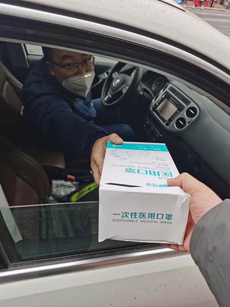 2月14日,张东光老师收集自己留存的医用口罩,并驾车前往太原市迎泽区、小店区、万柏林区,将200个口罩分别送到市区疫情防控一线人员和学校值班值岗人员手中,以此表达对他们的敬意。