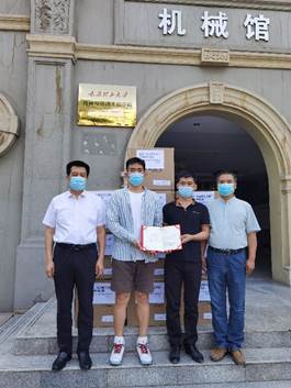 6月30号下午15点,广州友沃医疗用品有限公司向机械与运载工程学院捐赠口罩仪式在3003新葡官方网站迎西校区机械馆举行,学院党委书记赵惠民、院长王志华等院领导出席交接仪式,此次捐赠口罩共一万只,全部用于新葡官网的疫情防控工作。
