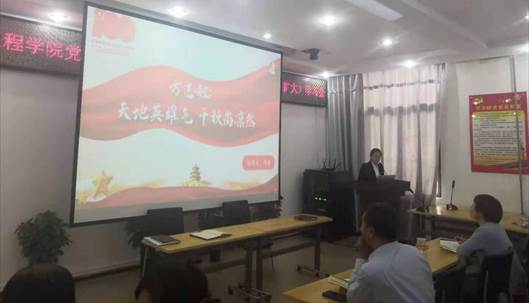 会上,学生党支部书记杨倩同志就方志敏的《可爱的中国》及方志敏精神作了发言。
