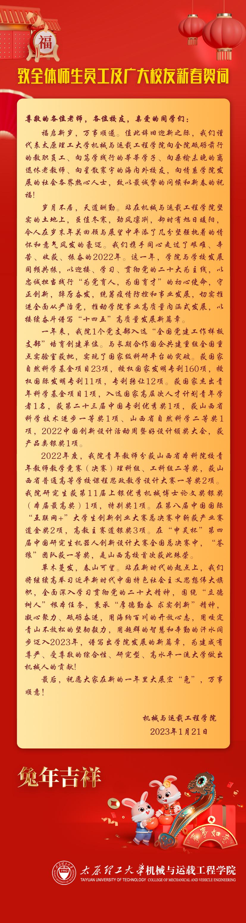 致全体师生员工及广大校友新春贺词
