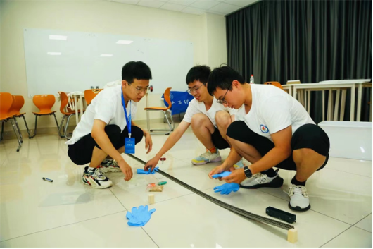 为了有效提高团体赛比赛成绩,我校力学学科制定了周密的备赛方案,在暑假开始之前,综合考虑个人赛成绩和实践动手能力,选拔了9位队员组成了参加两个团体赛的参赛队伍,分别是2021级工程力学专业学生李星毅、邢天澍,2021级飞行器设计与工程专业学生徐才棋、邹杰、陈俊杰、王莉、朱太郎、李杨、刘凯。7月下旬,9名参赛队员不惧酷暑,全部提前返校,在力学国家级实验教学示范中心开始了为期三周的集中训练。在指导教师刘鹏副教授的指导下,按照由易到难的顺序,通过方案讨论、技能练习、模拟比赛、分组对战等方式积极备战,在较短时间内迅速提高了竞技能力。