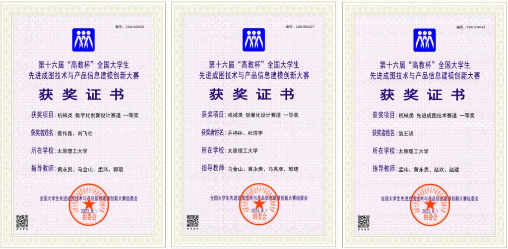 新葡官网学子荣获机械类团体二等奖1项、数字化创新设计赛道一等奖1项、轻量化设计赛道一等奖1项、先进成图技术赛道一等奖1项、先进成图技术赛道三等奖5项、增材制造赛道三等奖1项。5位工程图学教师获得优秀指导教师奖。今年新葡官网在大赛团体奖获、学生获奖级别和优秀教师指导奖都取得新突破。